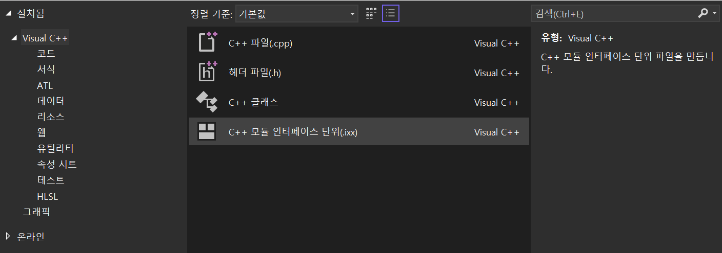Hello, Modules! 1. Module 사용해보기 아직은 visual studio 에서, Compile과정은 비표준입니다. Module을 사용 전, 세팅해주어야 하는게 있습니다. 1. 속성 -> C/C++ -> 언어 에서 C++ 언어 표준을 /std:c++latest로 변